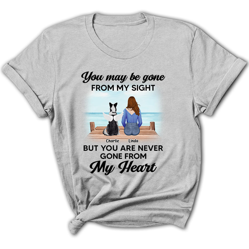 This personalized memorial women's t-shirt is a thoughtful gift for any occasion. You can make your beloved one feel even more special by remembering a happy moment with their furry friends.