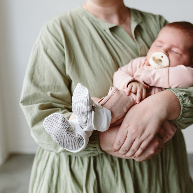 signature two-part closure system ensures scratch and germ protection and allows adjustable fit as baby grows