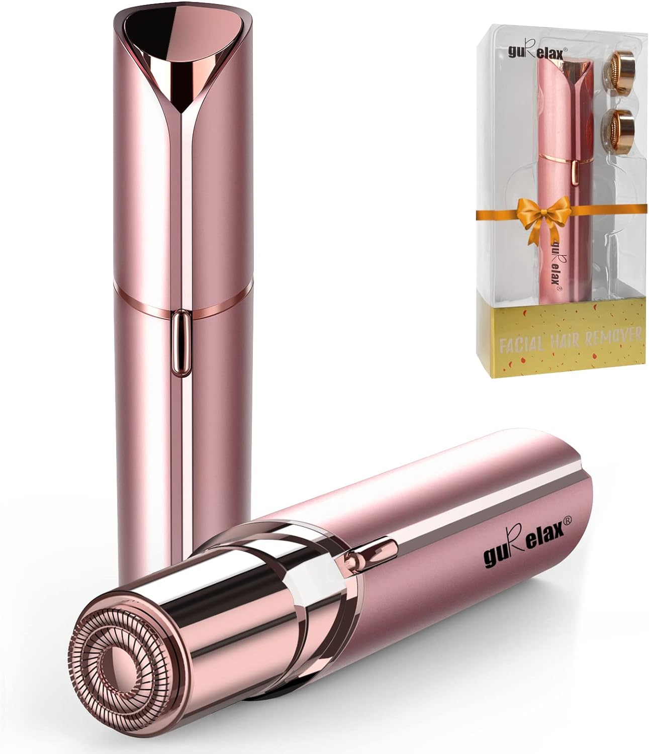 Gurelax Facial Flawless Hair Remove (Valentines Day Gifts with 2 x Replacement Heads), Face Shaver for Women, Best Touch Hair Removal Device, Electric Upper Lip/Chin Razors for Women
