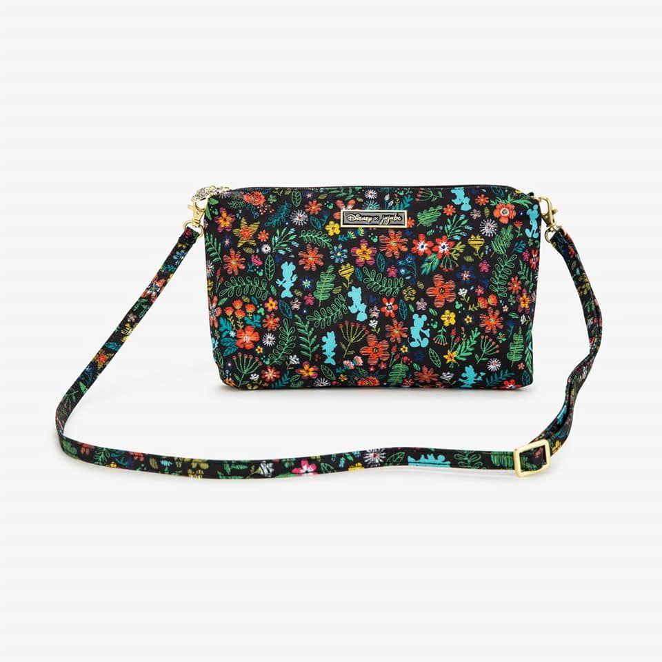 Love is in the air with our NEW Disney x JuJuBe collaboration! Get ready to fall in love with Amour des Fleurs! Iconic JuJuBe florals combined with Disney’s favorite couple make Amour des Fleurs the print of your dreams! Search for hidden Mickeys (large and small) frolicking amidst the flowering forest. Think you’ve found them all? Look again! The illusion of embroidered flowers and foliage delicately decorate the classic black background. “Hand-stitched” petals in coral, yellow, pink, aqua, indigo, and white create a colorful bouquet! Inside you’ll discover a soft mint lining adorned with wildflowers arranged as Mickey, reminiscent of a manicured garden. Brushed gold metal hardware adds a sense of wonder and elegance. Three unique zipper pulls adorn every bag... raised gold flowers upon a black Mickey head plus nostalgic Mickey and Minnie with hands shaped as half a heart. Join their hands together to form one timeless heart expressing their adoration for each other and this magical print! Each detail delights with Amour des Fleurs!