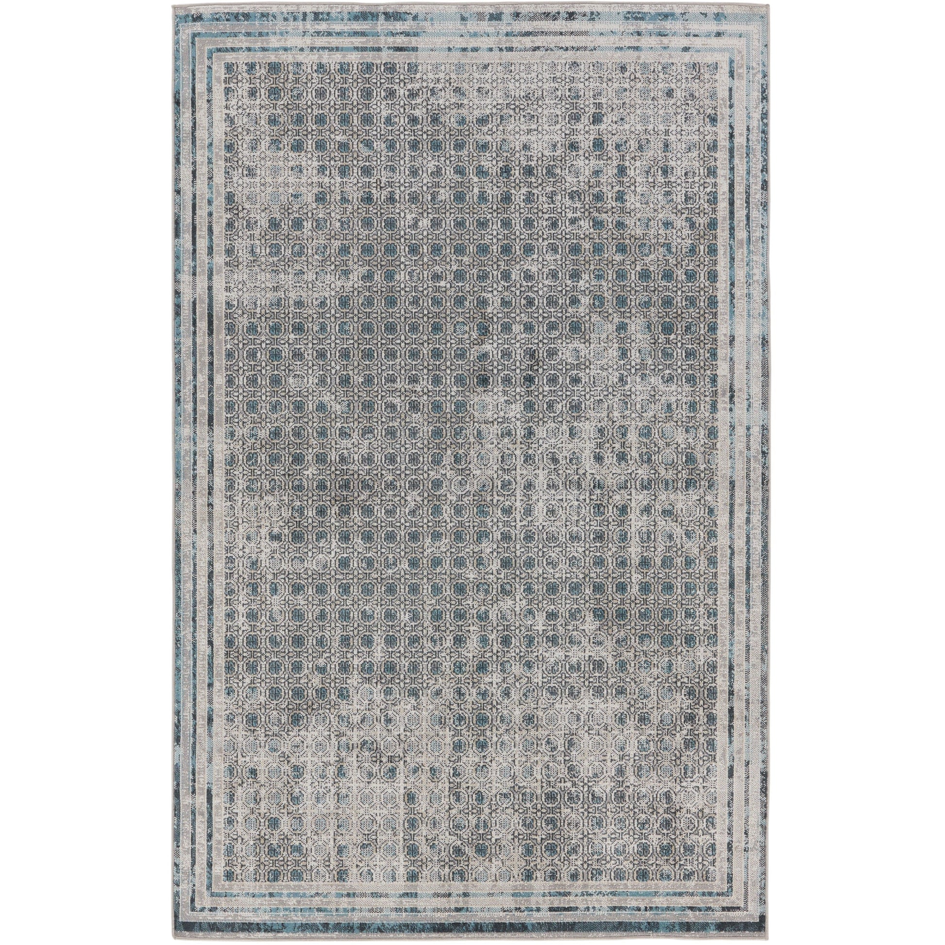 The incredibly chic Nadine collection offers durability and easy-care without compromising one bit on the style. This kid and pet-friendly assortment of rugs features a washable quality and a range of globally inspired designs that anchor rooms with eye-catching appeal. The Allora rug showcases a distressed trellis pattern in blue on a light gray background with hints of gold and cream. The 100% polyester fibers provide a slight sheen and lasting quality that thrives in high traffic areas of the home such as kitchens, halls, bathrooms, living rooms, and bedrooms.